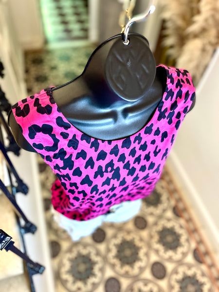 Top léopard fuchsia
