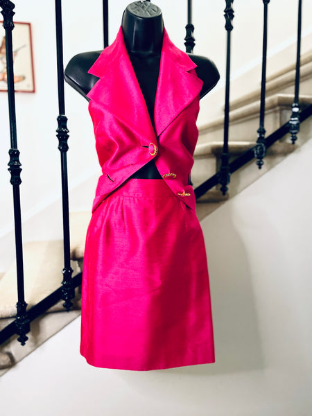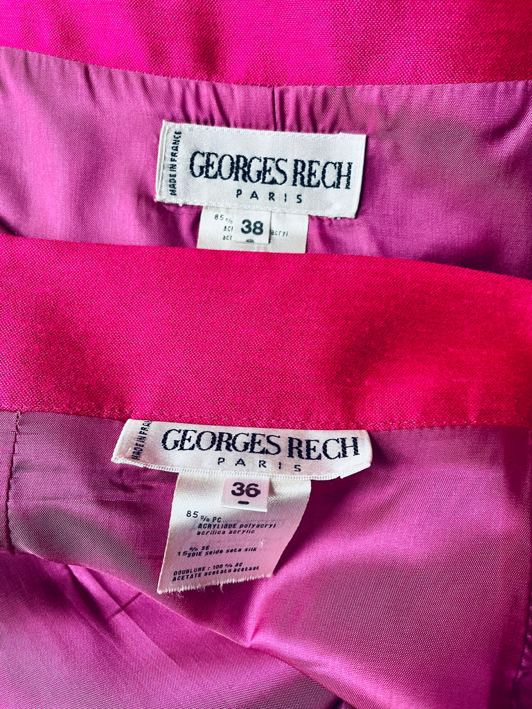 État : Très bon. A noter que la jupe assortie est offerte avec la veste (sa taille indiquée est 36 mais convient mieux pour un 34). Elle pourra être raccourcie pour plus de modernité.