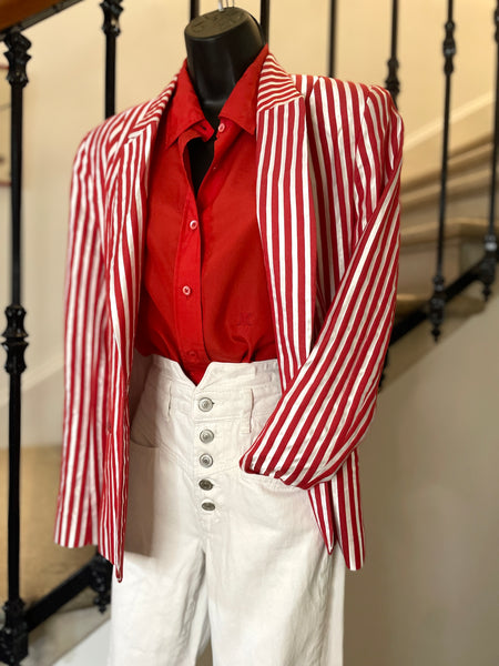 Veste GUY LAROCHE et pantalon rayé SAINT LAURENT Rive gauche dispos sur le Eshop