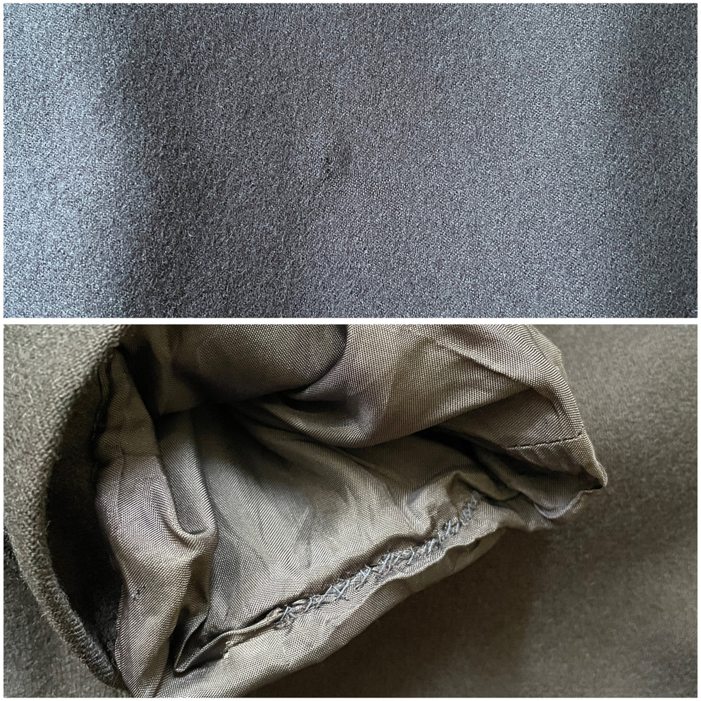 État : Très bon. A noter des reprises aux poignets sur la doublure et une petite imperfection dans le dos (cf photo)